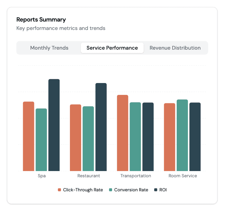 Built to boost guest satisfaction, unlock new revenue through upsells and cross-sells, and make data-driven decisions — with no extra load on your staff. Just results.